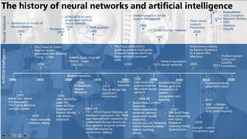首先,陶教授大家回顾了人工智能与神经网络的发展历程,用一张图的形式向大家简要展示人工智能和神经网络从被提出至今的重要突破。随后,陶教授又概括性地描述了人工智能当今及日后可能面临的诸多问题,如机器与人类的关系问题、人工智能的伦理问题、大数据杀熟等与人工智能相关的社会问题。