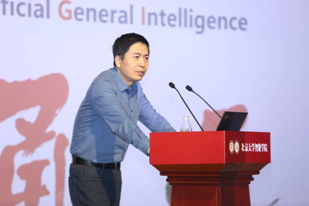 朱松纯首先强调了通用人工智能 (AGI) 的重要性和北大在人工智能领域的独特地位。然后他从“什么是人”这一哲学问题出发,阐述了人类认知架构的演变过程,并提出了UV理论,即认知架构、价值体系和行为函数的三个维度来刻画人类智能。他认为,通用人工智能 (AGI) 应具备与人类相似的UV结构,才能实现真正的智能。他接着从通用人工智能 (AGI) 的定义、产业生态、智能社会分别介绍了通用智能体、行业智能体、社会智能体。