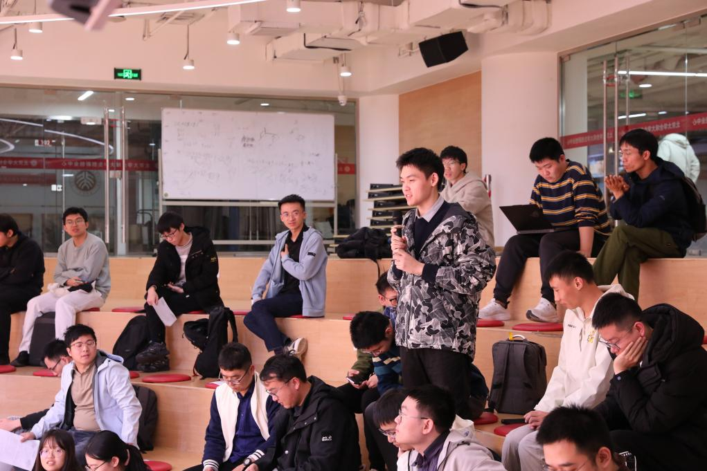 随后,来自北京通用人工智能研究院的代表进行了宣讲分享。张振亮向同学们介绍通研院的发展状况、研究方向以及人才需求等。王天旭则分享了自己在通研院工作、科研和生活的体验,让同学们对通研院有充分认识。