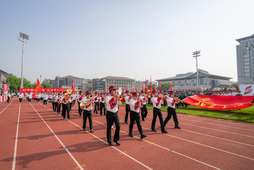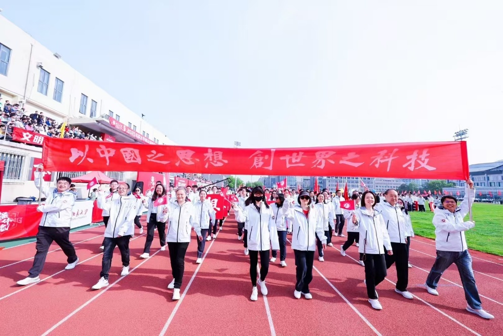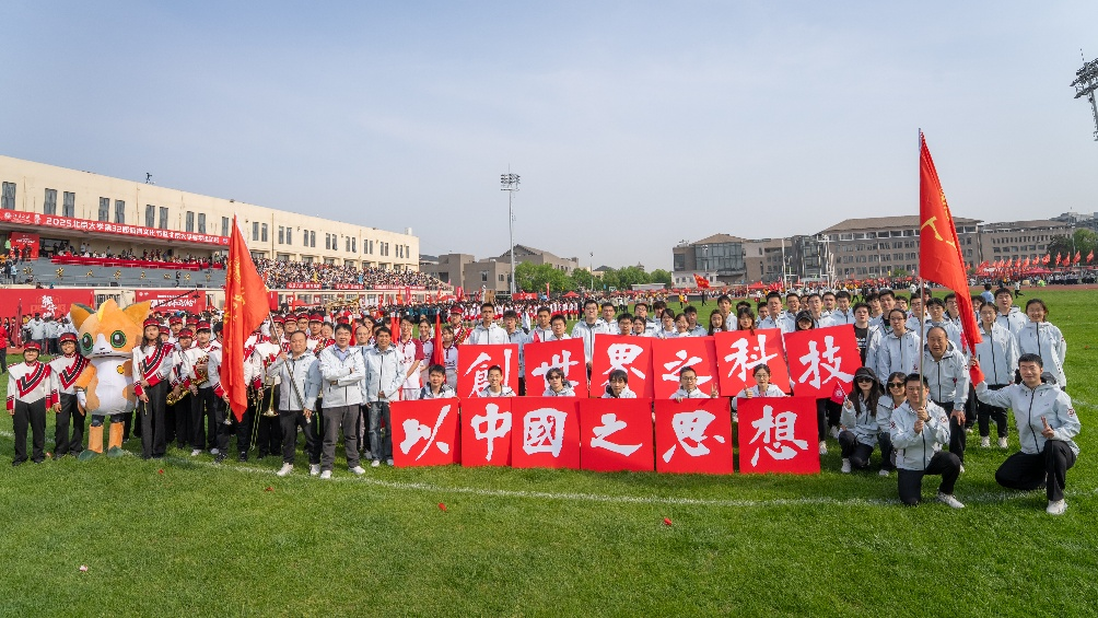 4月26日上午,春季运动会入场式在五四体育场隆重举行。近百名师生参与到旗舞、乐队、方阵等各支队伍中。智能学科团队精心设计队列行进的各个环节,融入诸多元素、诸多亮点,力图全面展现学科发展理念、智能青年精神风貌,并专门筹备了统一着装。