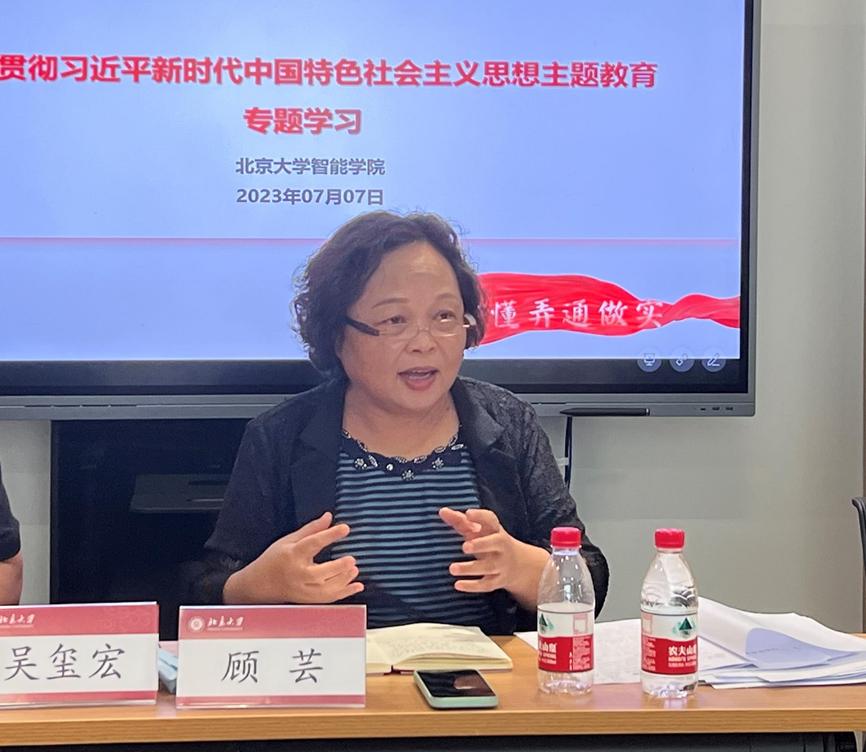 党委书记吴玺宏,院长朱松纯,副书记、副院长罗定生,副院长林宙辰,副书记宋国杰及教工党支部党员老师参加会议,学校主题教育第二指导组组长顾芸到会指导。会议由罗定生主持。