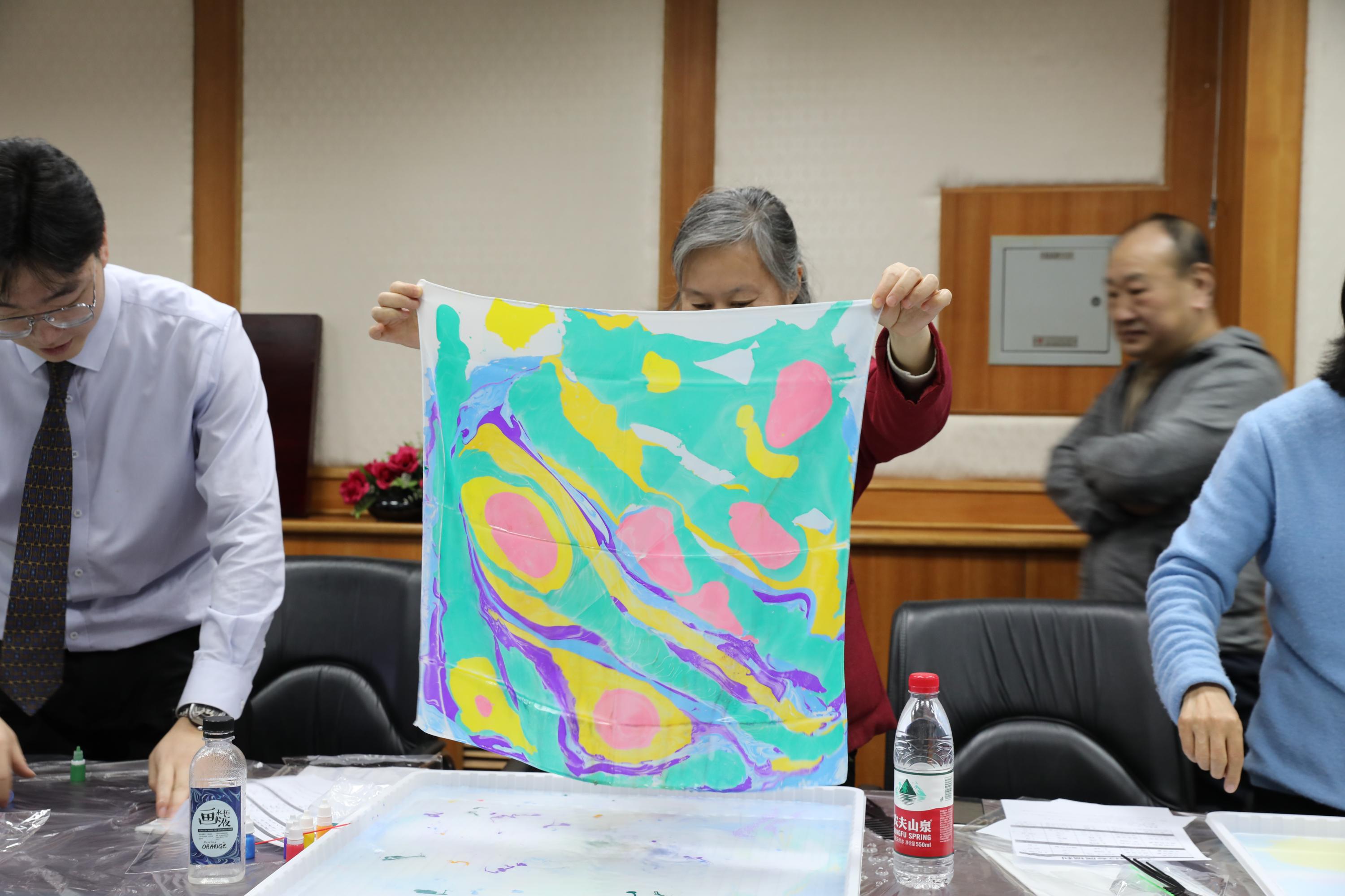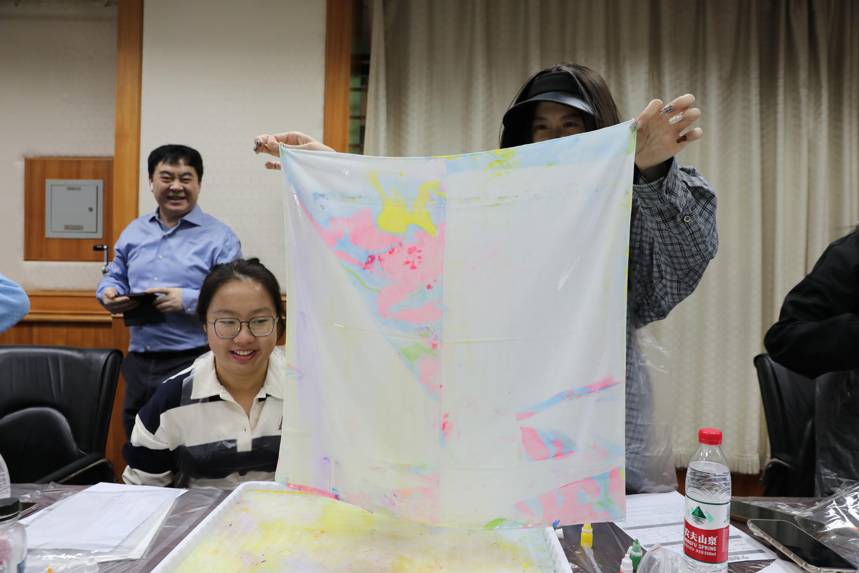 党委副书记、副院长罗定生亲临现场,与女教职工同庆佳节。活动现场,白色丝巾与斑斓染料交织,勾勒出独属于女性的艺术画卷。