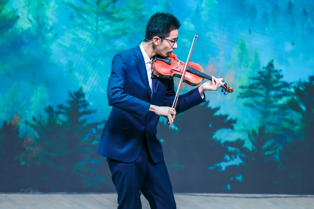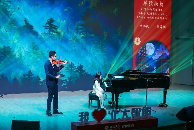 弦音婉转,情韵悠长。晚会第二篇章—博雅风华部分,来自2023级的夏海闻同学与来自北大附小二年级的林令仪小朋友同台演奏。夏海闻表演了小提琴独奏《Bach: Gavotte en Rondeaux(From Partita No.3 in E,BWV1006)》。指尖轻舞于琴弦,音符似精灵跳跃而出,时而激昂奋进,如惊涛拍岸卷起千堆雪;时而低回婉转,像山间幽泉潺潺流淌。悠扬的旋律在大厅中盘旋回荡,萦绕于每一位听众的心间,诉说着青春的梦想与执着,台下观众沉浸其中,仿佛被带入一个美妙而静谧的音乐之境,尽显智班班学子在艺术领域的深厚造诣与细腻情感。